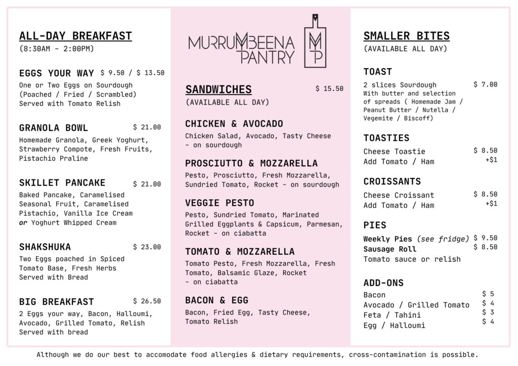 We are a small cafe and food retail store located in the heart of Murrumbeena, Victoria.